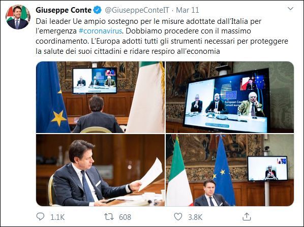 **10日會議後,意大利、德國、法國的領導人也強調歐盟需要協同合作。**據政客新聞網(POLITOCO)歐洲版報道,意大利總理孔特在推特上表示,歐盟領導人對意大利的隔離措施表示了“廣泛支持”,“我們必須進行最大限度的協調,歐洲應該採取一切必要手段,保護其公民的健康,恢復經濟活力。”