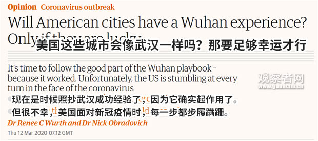 為什麼武漢的正反兩方面經驗擺在眼前,美國政府部門卻沒有行動起來?為什麼他們選擇無視和淡化疫情,而不是立刻採取強有力的措施對抗疫情?美國人口健康學家蕾妮·沃斯博士和政治學家尼克·奧布拉多維奇對此無法理解,他們3月12日在英國《衞報》刊文,呼籲美國政府趕快採取行動,觀察者網編譯文章如下: