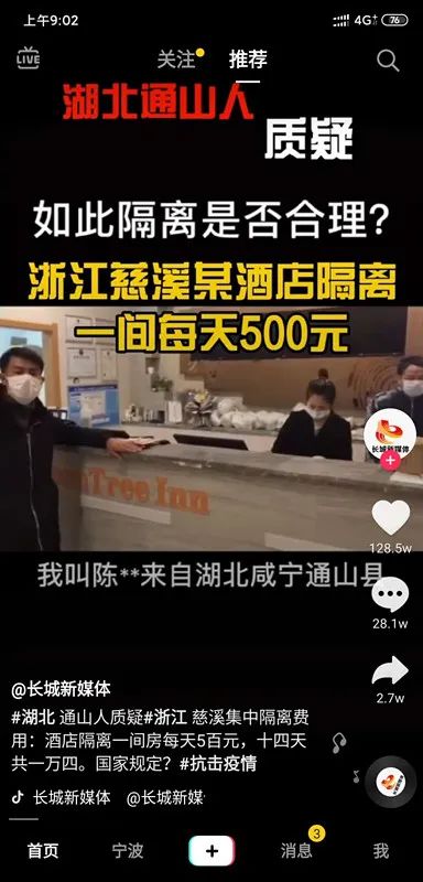 “浙江慈溪某酒店隔離,一間每天500元”?這兩天,抖音上一則網友拍攝的短視頻引起眾多網友關注。