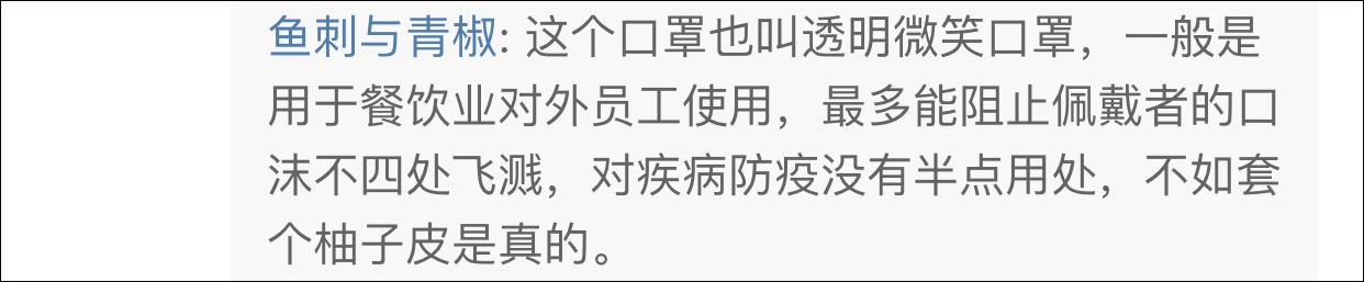 可到了錄製現場,評委們戴上了透明塑料口罩,這種口罩也叫餐飲口罩,上半部分是完全外露的,一般餐飲行業人員會使用這種口罩防止口水噴濺;
