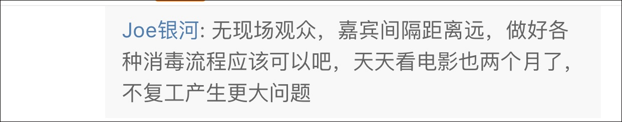 但也有網友認為,如此“配置”太不負責任,“塑料口罩都是半遮蓋,太不注意了。”近期,除了《天賜的聲音》以外,很多綜藝節目已經開始重新錄製,網友直言,復工可以,但安全的防護措施也要到位。