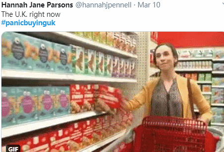 Twitter話題#英國恐慌性購買(panicbuyinguk)#下,一個網友形容,現在的英國人是這樣的;
