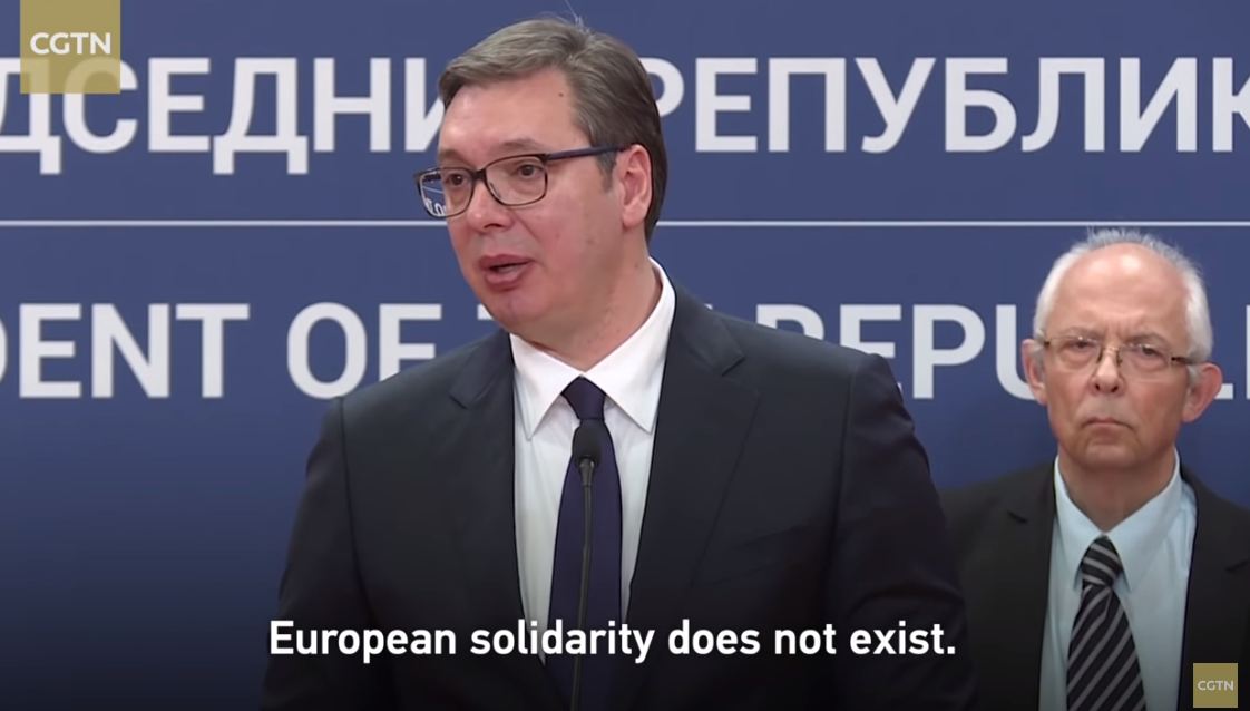 綜合CGTN、巴爾幹觀察(Balkan Insight)報道,武契奇説,“你會意識到,國際團結是不存在的,歐洲團結是不存在的,那只是一紙童話。”