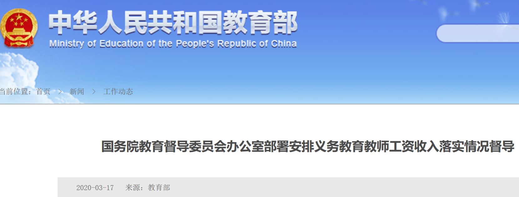 教育部網站3月17日消息,日前,國務院教育督導委員會辦公室向各省、自治區、直轄市人民政府辦公廳及新疆生產建設兵團辦公廳發出通知,對2020年義務教育教師工資收入落實情況督導作出具體安排。