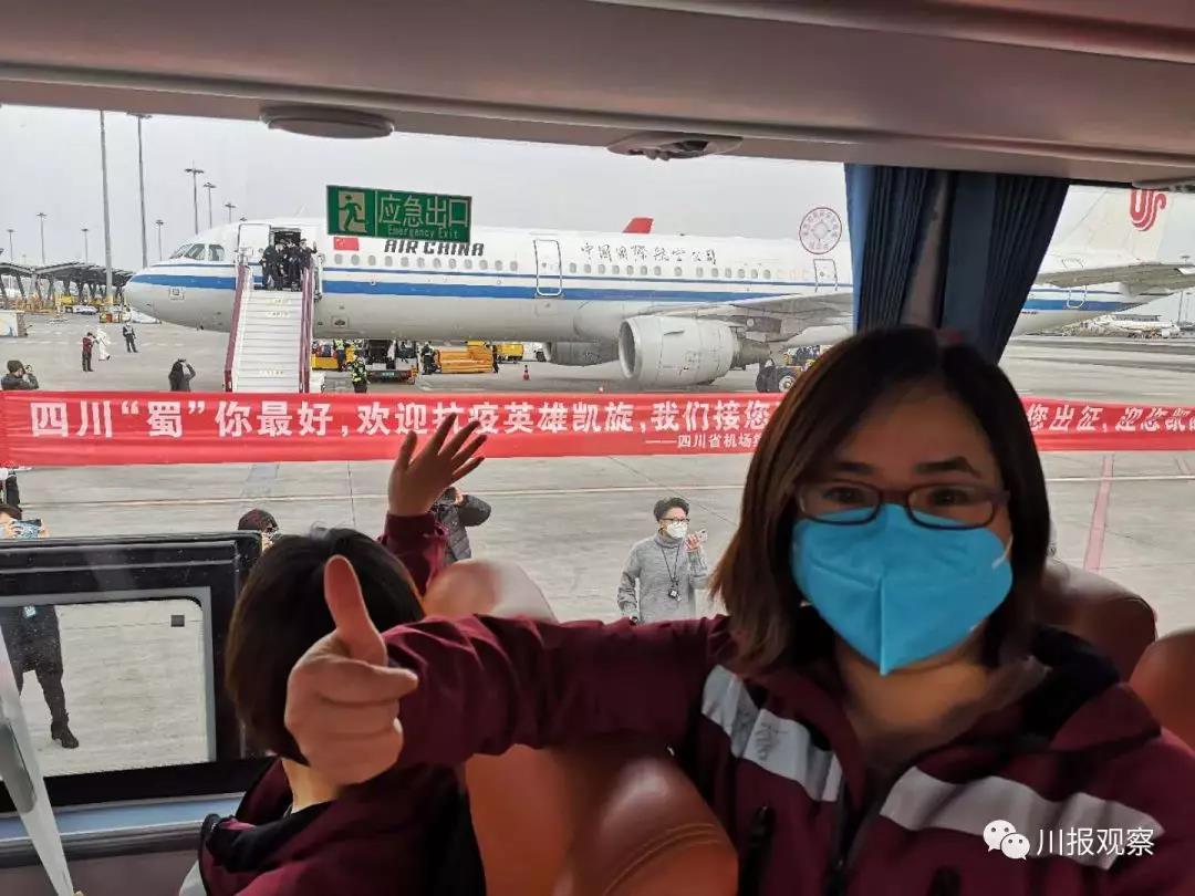 17日下午5時許,隨着飛機降落在成都雙流國際機場,四川援助湖北醫療隊首批303名隊員回到四川,他們將集中休整。