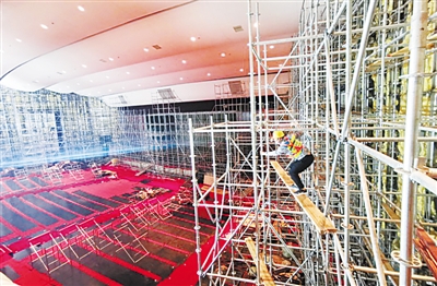第44屆世界遺產大會主會議廳施工現場。葉義斌攝/光明圖片