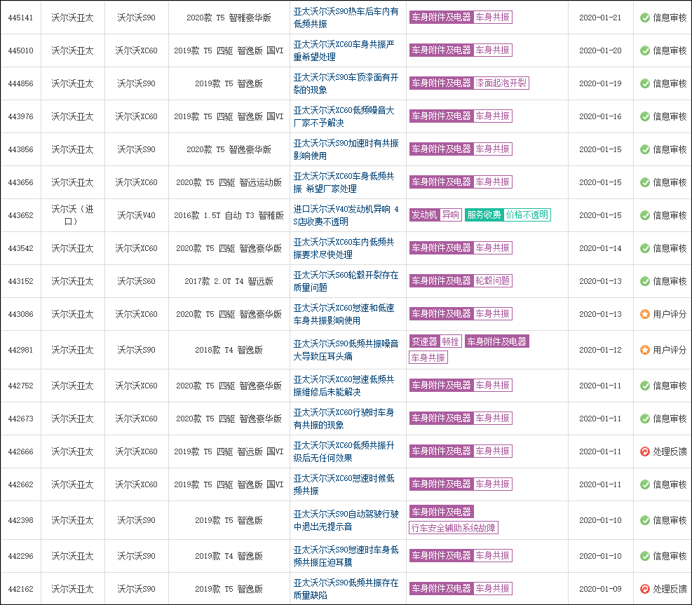 觀察者網汽車頻道查詢第三方汽車質量網站車質網發現,近期國內車主有關制動系統和汽車安全輔助系統的投訴較少,主要問題集中在車身共振上,涉及XC60、S90等車型。