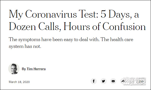 而在3月18日,《紐約時報》生活版編輯赫雷拉(Tim Herrera)在社交媒體上前來“認領”:“我就是那個被確診的員工。”當天赫雷拉還在《紐約時報》撰文,描述自己“坎坷的”確診經歷。