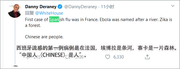 白宮發推為“中國病毒”辯解,外國網友:還好意思提西班牙流感?