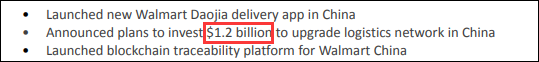 另外,沃爾瑪在2020財年報告中透露,將投資12億美元升級中國的物流網絡。