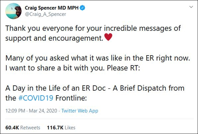“紐約急診室的一天”火了:我曾從埃博拉中倖存,但我害怕新冠病毒