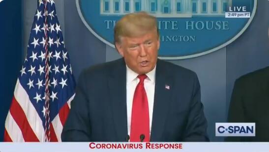 截至北京時間3月27日上午5點37分,美國成為世界上新冠肺炎確診病例數最多的國家,美國總統特朗普在26日的發佈會上稱,確診人數的上升“是因為檢測效率提高了”(視頻截圖)