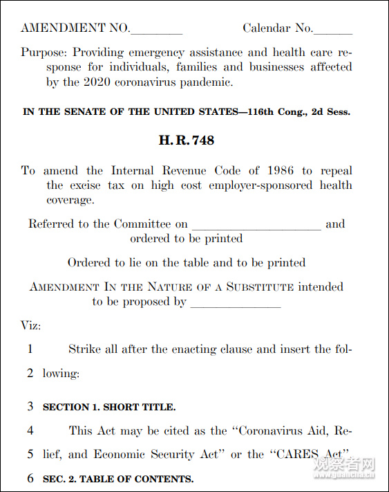 觀察者網通過梳理美國國會提供的法案原文發現,該法案實則計劃以3個方式,向美國注入總計2.143萬億美元的資金救助。這3個方式分別為:直接援助、貸款和補助。