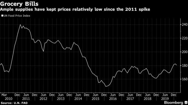 2010年以來聯合國糧農組織食品價格指數 圖源:彭博社