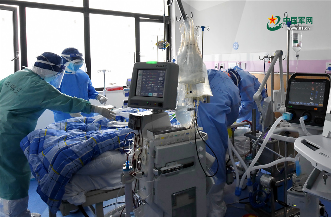 醫護人員密切觀測患者生命體徵。解放軍報記者 王傳順 攝