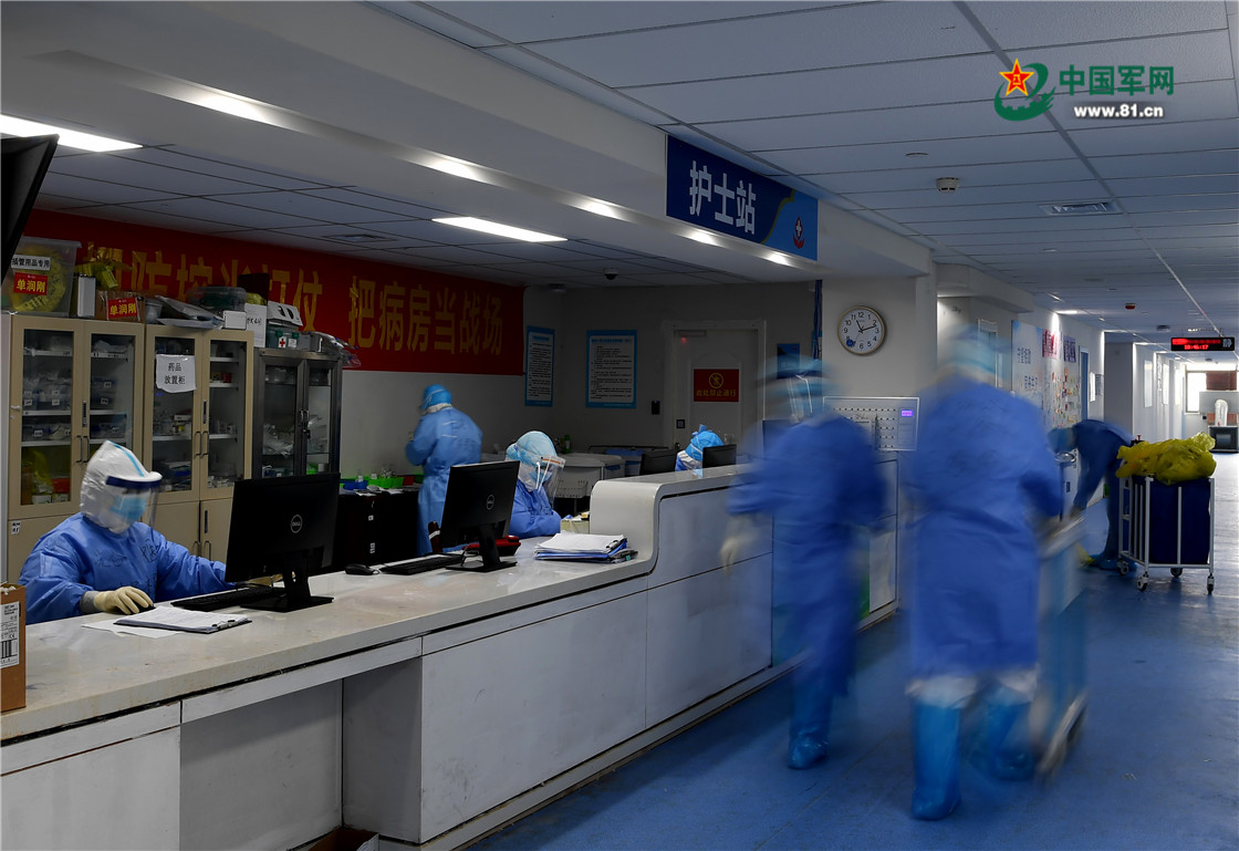 病區裏忙碌的身影,詮釋了醫護人員勇挑重擔、敢打硬戰和不怕疲勞連續作戰的優良作風。解放軍報記者 王傳順 攝