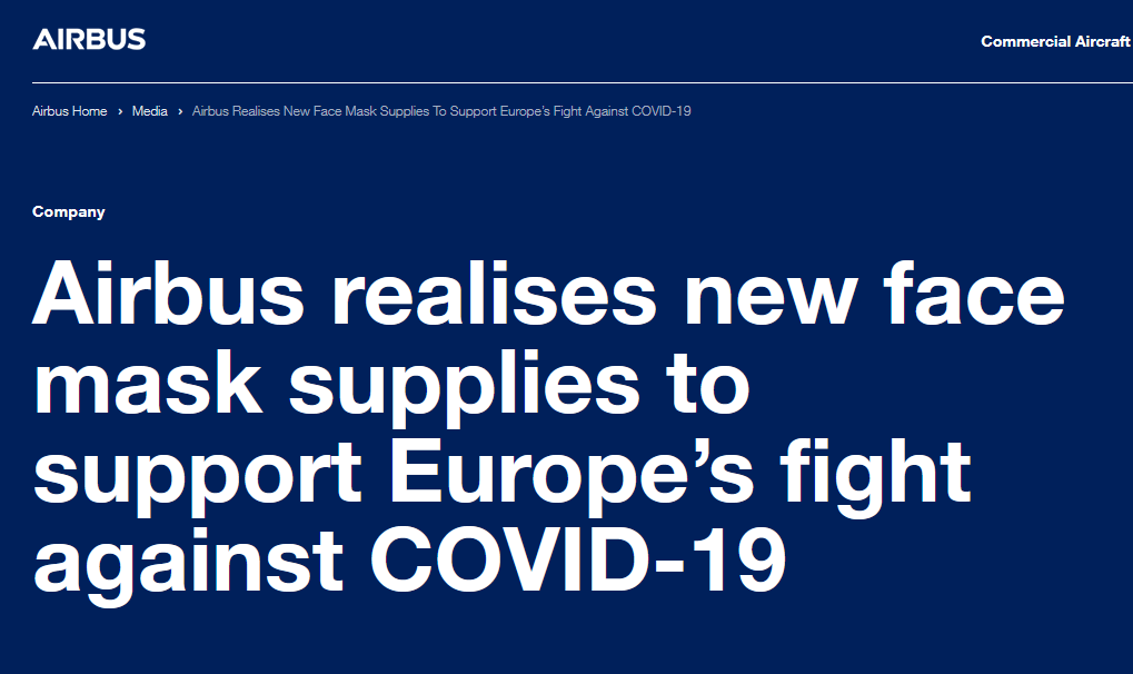 空客助歐洲抗疫,實現口罩供給