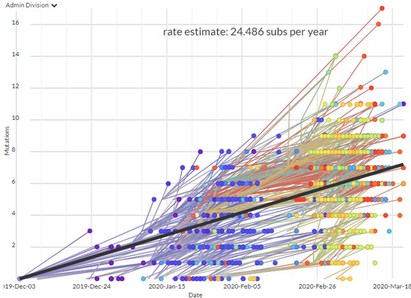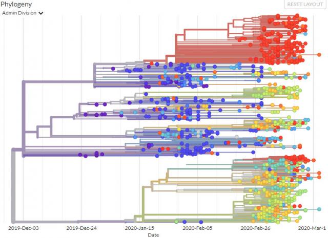 很多人一直盯着Nextstrain.org,這家網站在持續更新全球新冠病毒基因的分析結果,到3月25日為止,已經有1200多個樣本。而短短几天前,3月19日還只有700個樣本。