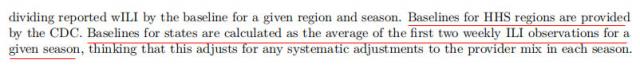 但是作者的各州基線卻僅僅是頭兩週流感樣病例的平均數……作者的解釋是減少系統誤差。
