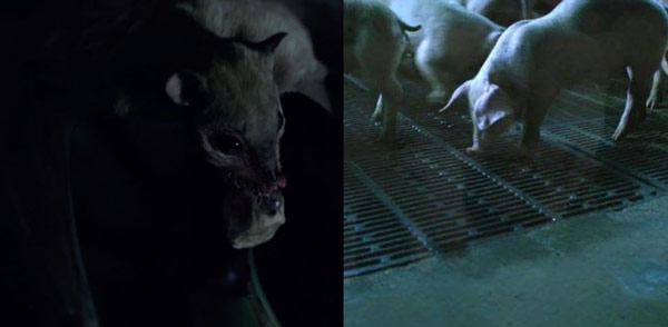 電影《傳染病》中的蝙蝠與豬(圖片來源:電影截圖)