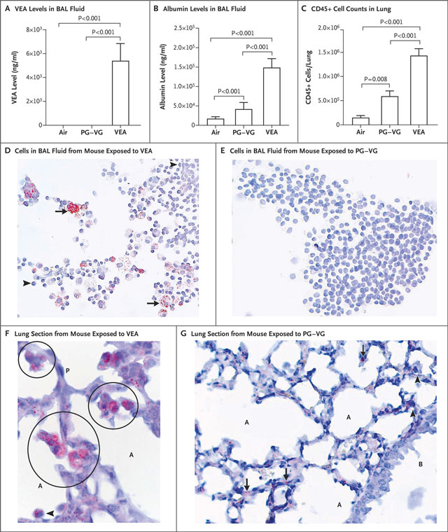以下是維生素E醋酸酯動物實驗的部分結果,作者用了空白對照,還用了丙二醇和植物甘油(PG-VG)作對照。