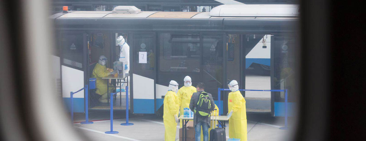 從機場口岸入境的旅客(浦東及虹橋機場)如果是上海市民且有固定住所,則由所屬的區接走,集中運輸到所在區的隔離點進行隔離;如果是周邊三省市,則由所屬省市的駐機場人員接走,集中使用大巴運回該省市並進行隔離。而不屬於上海市及周邊三省市的重點防控人員,則集中轉運至隔離點進行強制隔離。