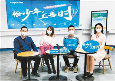 防控新冠肺炎疫情下,高校招聘走向雲時代。圖為浪潮集團近日在天津大學舉行的空中招聘宣講會網絡直播現場。新華社發