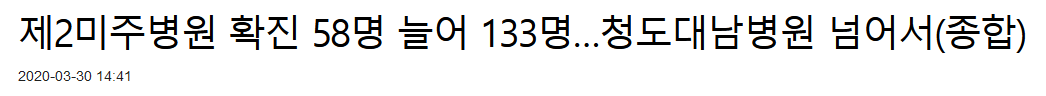 韓聯社還援引《大邱新聞》當天的消息稱,3月26日,第二美珠精神病醫院出現首例確診病例,此後確診人數不斷攀升。