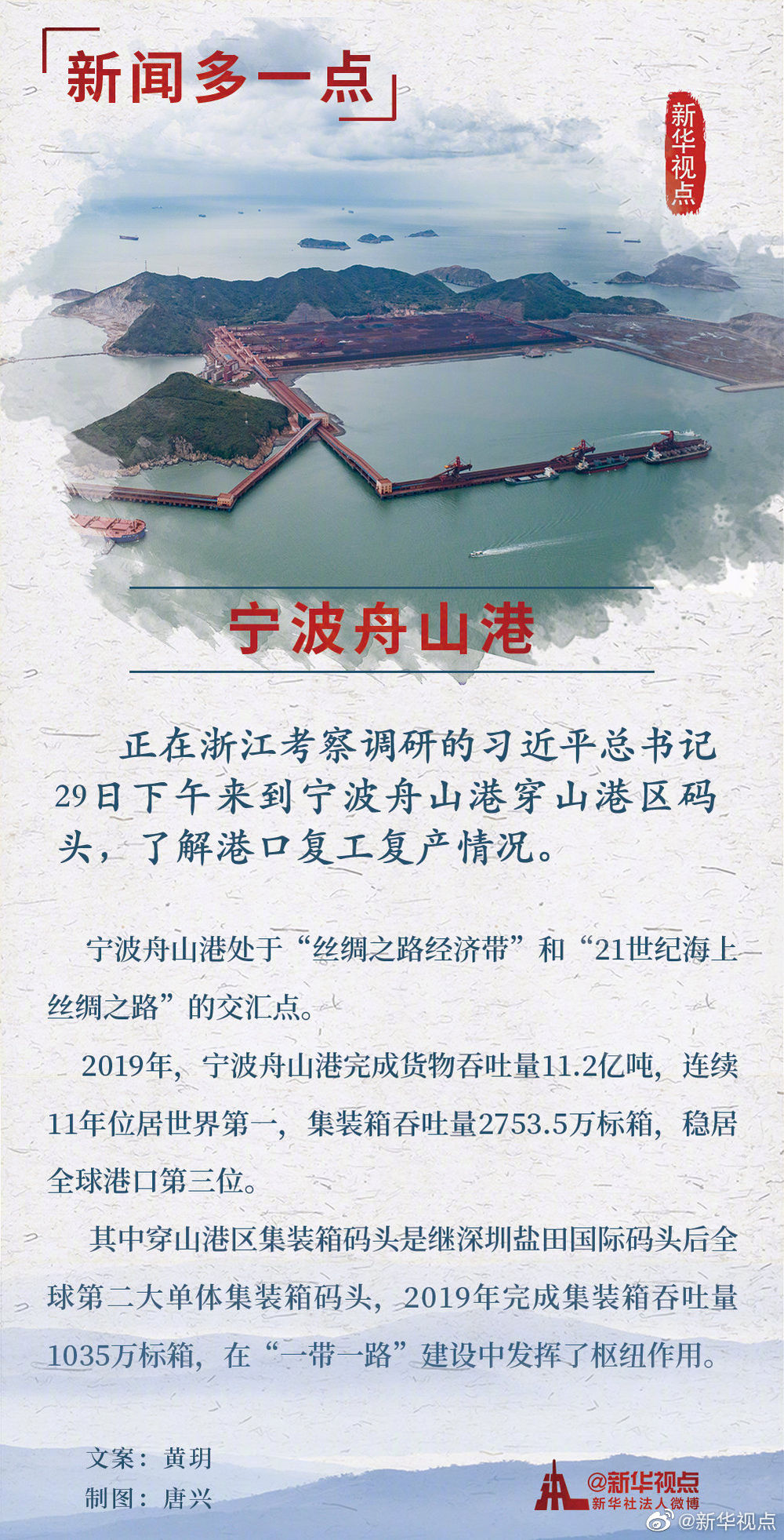 【新華社獨家視頻|這裏是總書記剛剛考察過的寧波舟山港】正在浙江考察調研的習近平總書記29日下午來到寧波舟山港穿山港區碼頭,瞭解港口復工復產情況。