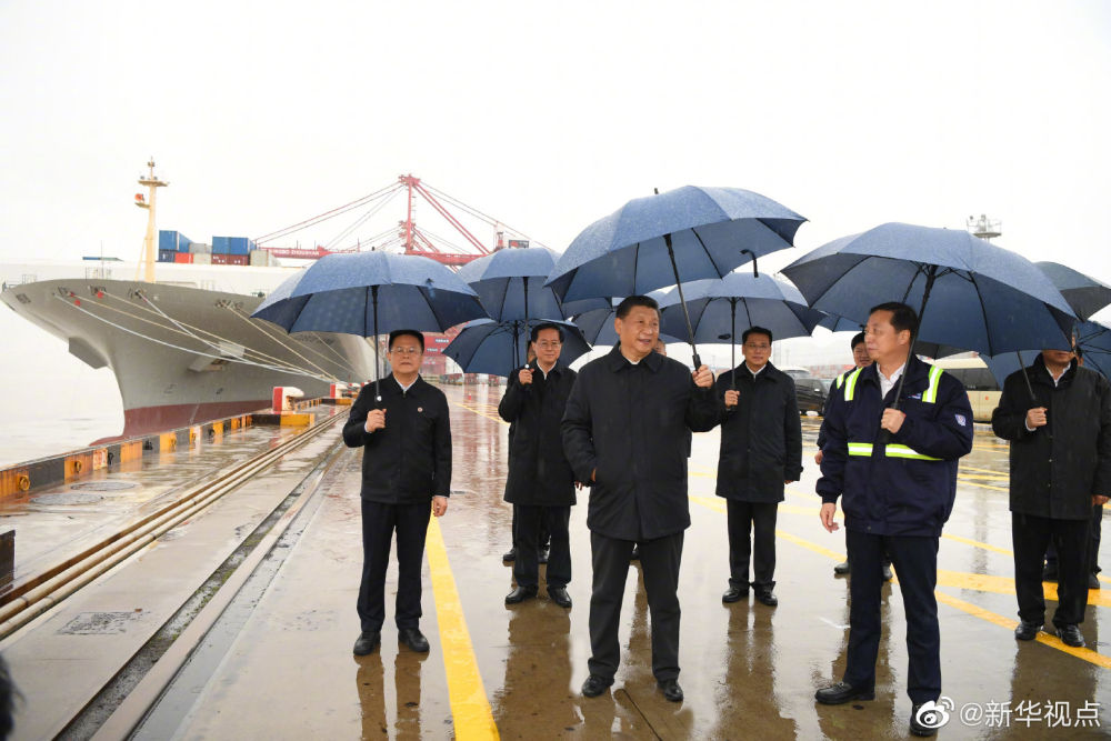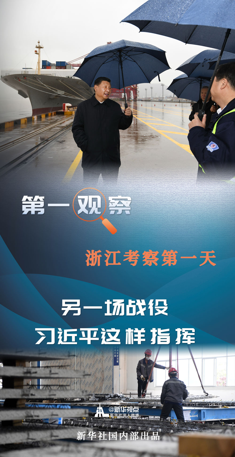 【習近平在浙江考察調研】習近平總書記29日在浙江考察調研。當天下午,他先後來到寧波舟山港穿山港區碼頭、北侖大碶高端汽配模具園區,瞭解港口和園區企業復工復產情況。(記者:張曉松、楊維漢、朱基釵)