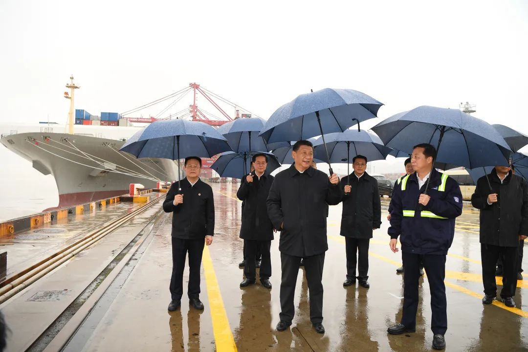 從新華社發出的現場照片看,總書記在寧波舟山港穿山港區碼頭上沒有佩戴口罩。↓↓↓