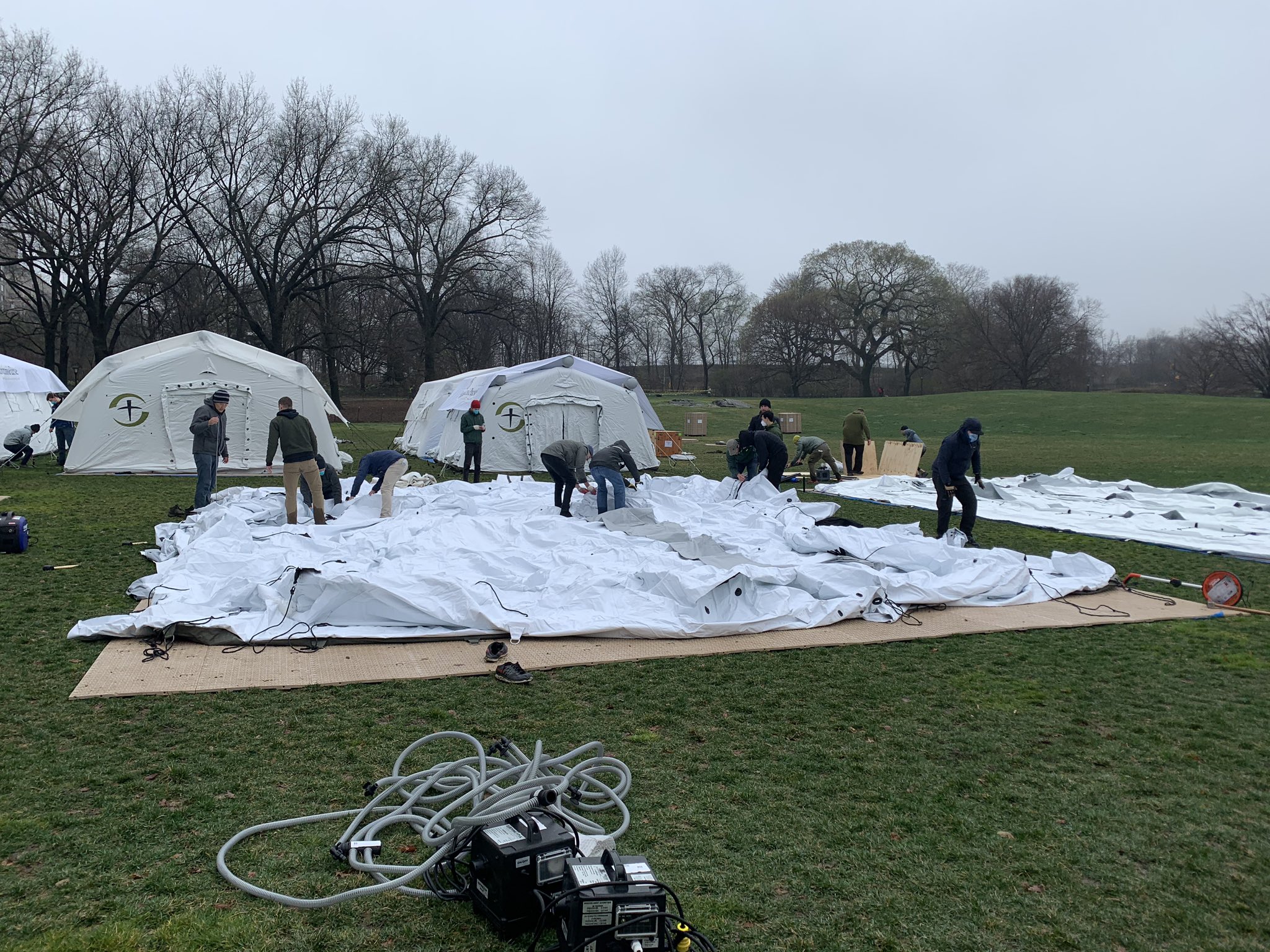 非盈利組織撒馬利亞救援會 ,正在紐約市中心的中央公園搭建帳篷,作為一個有68張牀位的臨時醫院,包括10個配有呼吸機的臨時重症治療單元。該組織預計31日能投入使用。