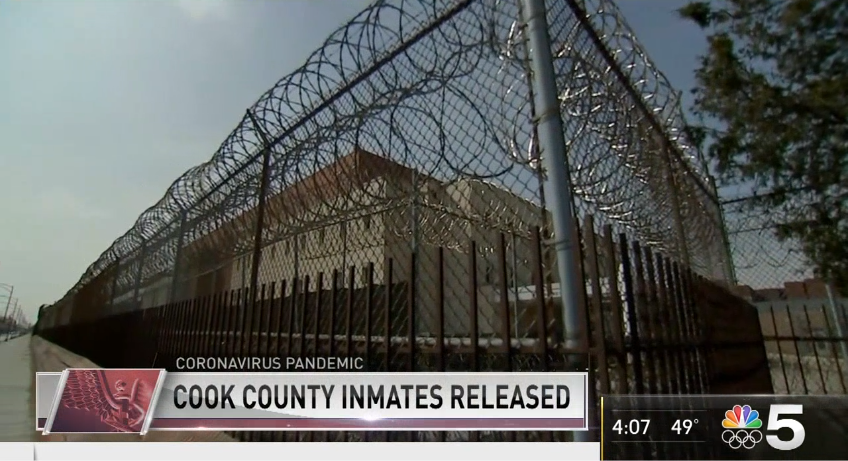 全國廣播公司(NBC)28日報道,庫克郡監獄開始釋放部分犯人,以此減緩疫情傳播 圖片來源:NBC視頻截圖