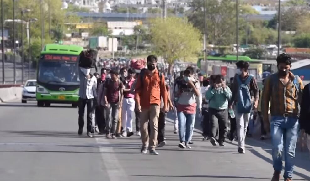 由於印度21天的“封城令”,接下來一段時間,印度許多外來務工者將沒有收入,無法付房租與購買食物,數百萬外來務工者因此選擇逃離城市返鄉,其中許多人只能徒步數百英里返鄉。