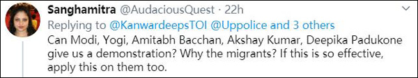 一位網友質問,“莫迪、阿米塔布·巴沙坎……可以給我們做個示範嗎?為什麼是農民工?如果這樣有效,他們應該也被這樣消毒!”