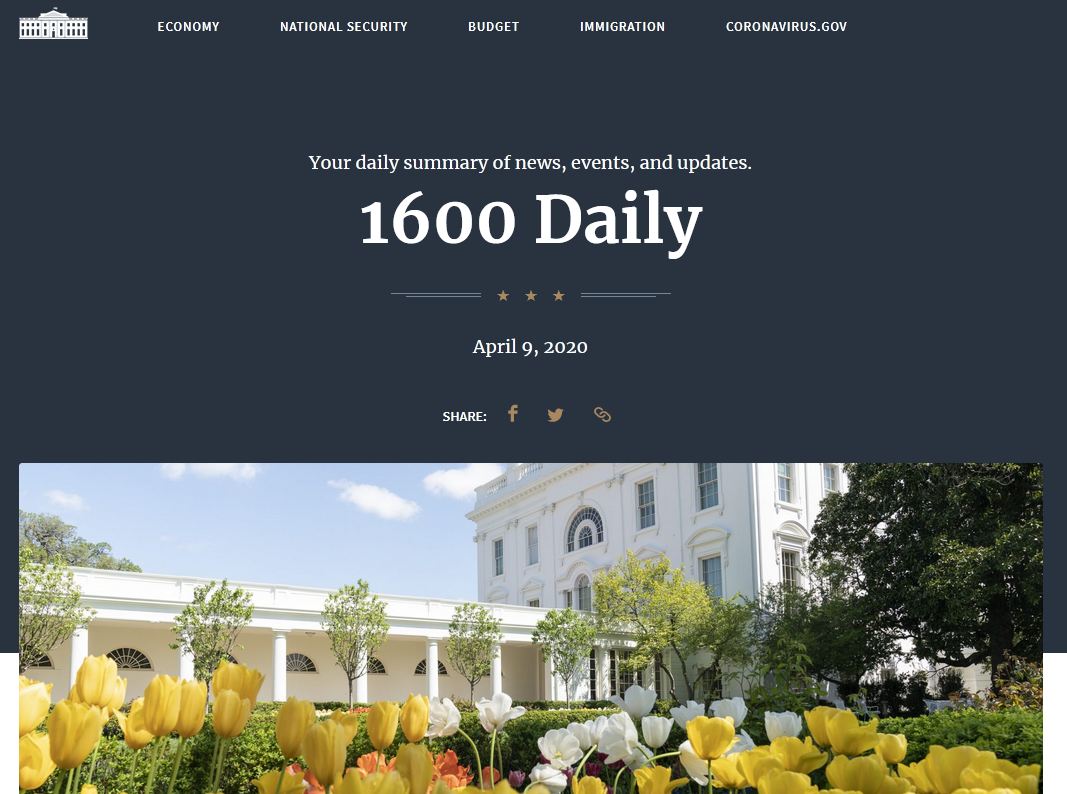 簡報寫道:“在我們國家應對新冠病毒的過程中,最偉大的英雄是美國的醫療工作者和一線人員。第一夫人梅拉尼婭·特朗普本週錄製了一段視頻,代表國家感謝他們。
