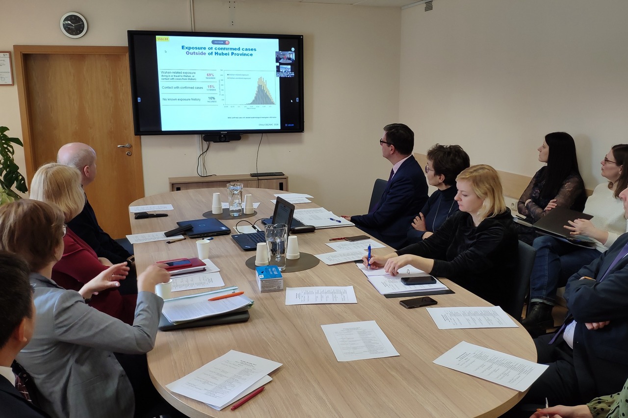3月13日,立陶宛衞生部、各大醫院和研究機構的官員和專家參加視頻會議。中國同中東歐17國舉行新冠肺炎疫情防控專家視頻會議,分享交流疫情防控經驗及信息。圖自新華社