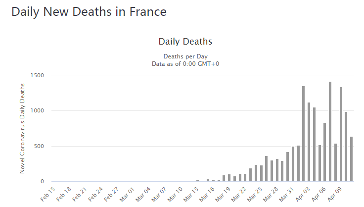 法國每日因新冠肺炎死亡人數(圖/worldometers)