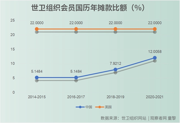 進入21世紀以來,美國在這一項經費貢獻上一直獨佔鰲頭,兢兢業業地奉獻總的五分之一到四分之一不等的評定會費,而我國由於國力的上升,按照最新一次WHO雙財年的評定,佔比首次超過了10%。而且筆者需要再着重説一句,美國在聯合國很多下屬機構下面經常以“老賴”的面目出現,拖欠會費是常事,但是在特朗普當政之前,給WHO掏錢倒是一貫爽快。作為WHO的主要組建倡議者,美國一直把WHO當做彰顯自己醫學衞生科學之昌盛,為全人類健康謀福利的一塊金字招牌,經常拖欠會費的其實是非洲一些比較窮的國家,如中非、乍得、岡比亞和一些經常鬧內亂的中東各國。