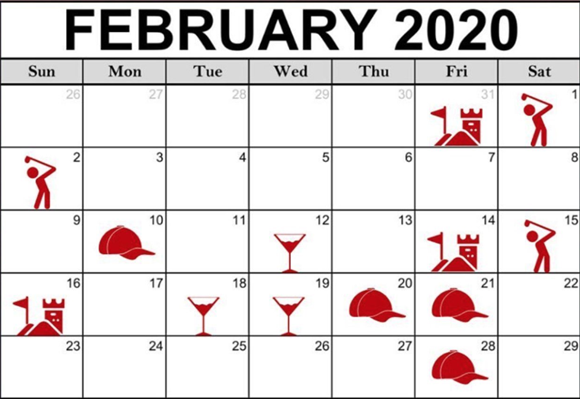 特朗普指責WHO對美國分享信息不夠,但2月份他在幹什麼呢?美國網友在社交網絡上繪製了他的2月份日程表:在家睡覺,打高爾夫,舉辦各種選舉籌款酒宴,組織“讓美國再次偉大”選民集會……