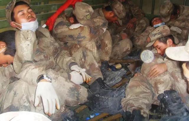 抗震救災期間,官兵在車廂內進行短暫休息。