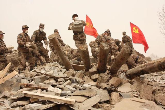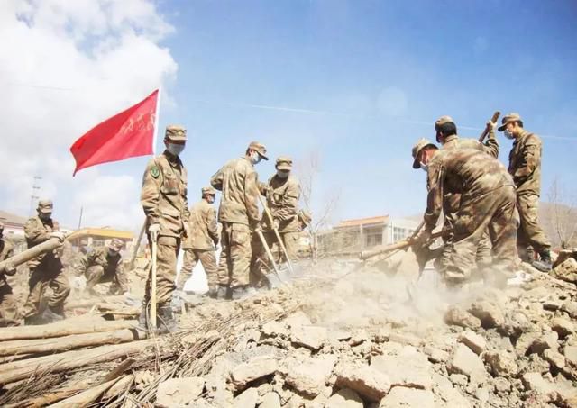 決戰震後的“黃金72小時”裏,官兵們努力搜尋生命的跡象,有鍬的用鍬挖,沒鍬的就用手刨。受災的藏族同胞哽咽着喊道:“金珠瑪米來啦,咱們有救了!”