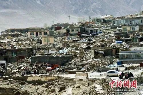 2010年4月14日16時,地震後的玉樹縣結古鎮損失慘重。中新社記者 張守國 攝