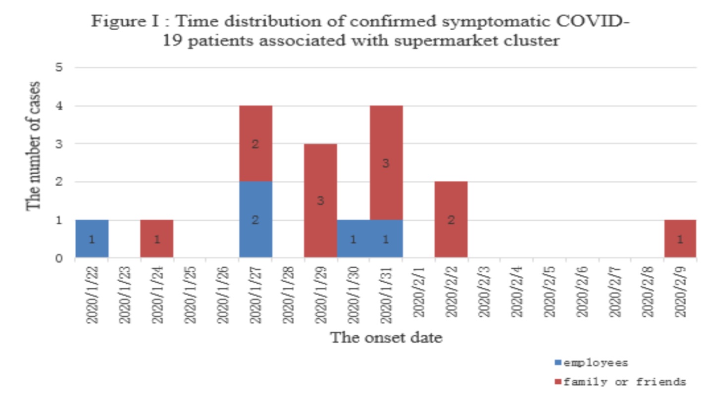論文細節顯示,該超市第第一例患者於1月22日發病,該員工被確診為COVID-19後,醫護人員對所有與患者有密切接觸的人進行了篩查,即在患者最後一次去超市前一週內去過超市的人。所有確診患者還均進行了胸部CT檢查,並在定點醫院集中監護治療。