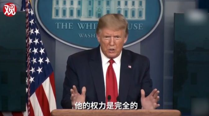 13日,特朗普聲稱總統有“完全的權力”遭圍攻 視頻截圖