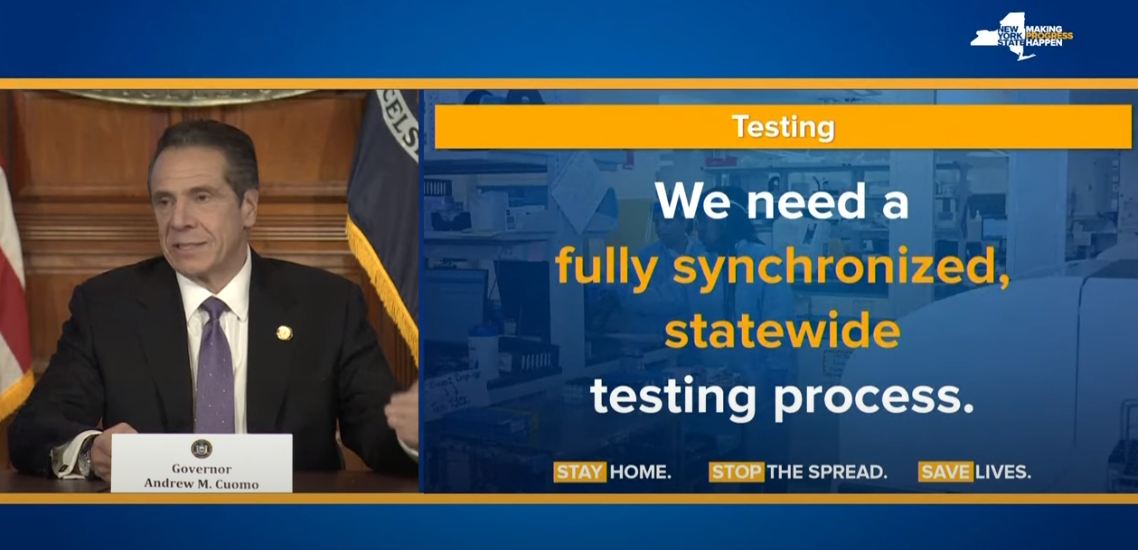 根據紐約州17日關於新冠疫情的發佈會視頻,科莫對記者介紹了紐約現在的疫情情況、復工計劃,以及面臨的挑戰。他希望聯邦政府在檢測和資金上幫助各州,因為他表示,很多用於檢測的材料來自中國,沒有聯邦政府的幫助,州政府沒法獲得這些材料。