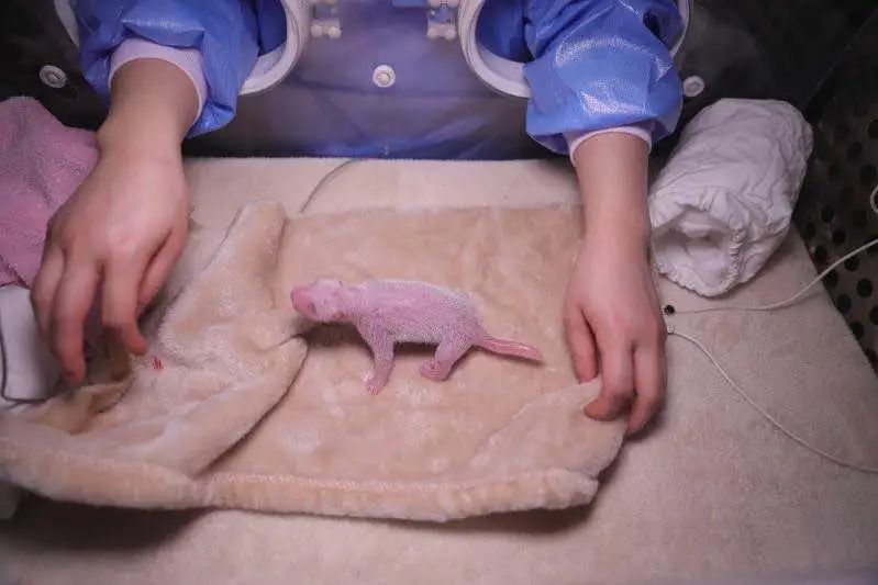 出生於3月17日的“熱乾麪”和“蛋烘糕”是成都大熊貓繁育研究基地有記錄以來出生時間最早的一對幼仔,初生體重均超過100克。目前,雙胞胎幼仔身體非常健康,大仔體重已超過1000克,小仔體重已超過800克,顏色也從一身粉嫩逐漸變成了大熊貓標誌性的黑白色。