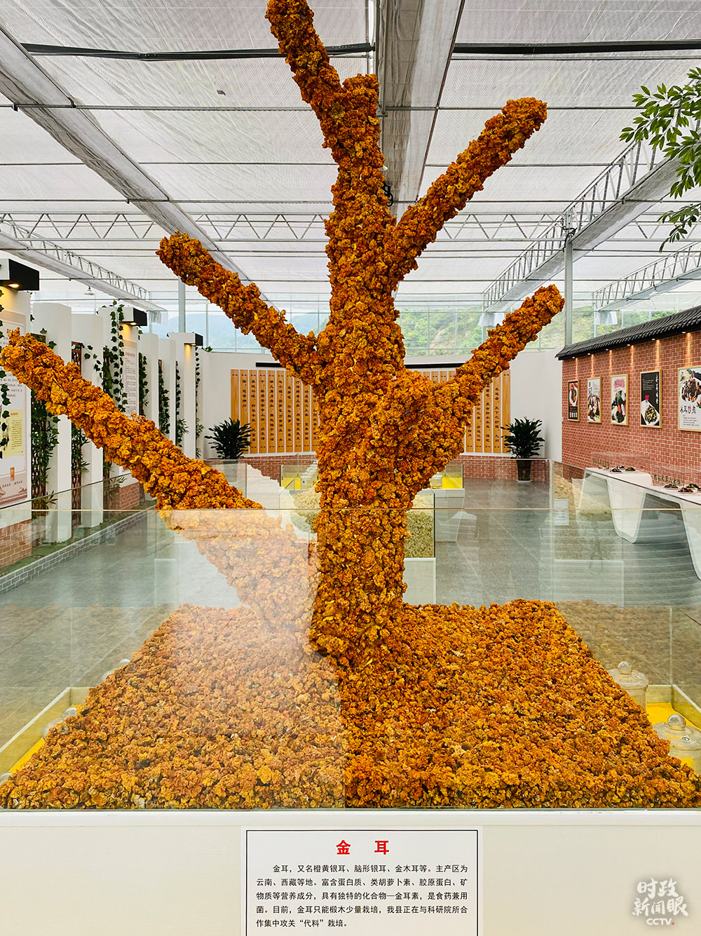 △這棵造型奪目的木耳叫金耳,主產區為雲南、西藏等地,是食藥兼用菌。(總枱央視記者彭漢明拍攝)