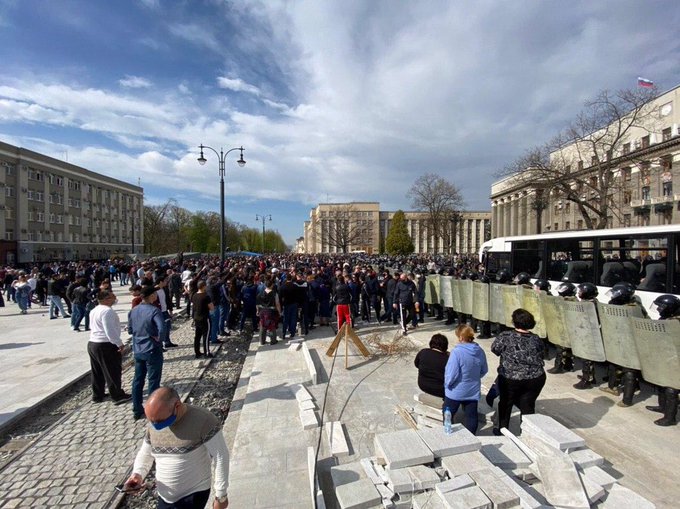 綜合《莫斯科時報》和路透社20日報道,因不滿政府的疫情應對措施對當地經濟和個人出行自由造成的影響,數百名示威者違法聚集在北奧塞梯的首府弗拉季高加(Vladikavkaz),抗議政府的隔離令。其中,許多人未戴口罩,也沒有遵守“社交距離”。