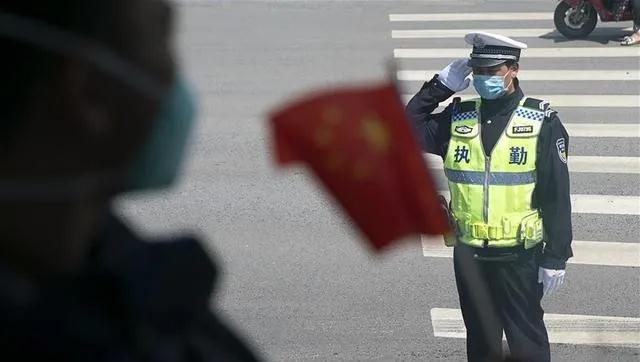一名武漢警察向離開的協和醫療隊敬禮,2020年(圖/新華網)